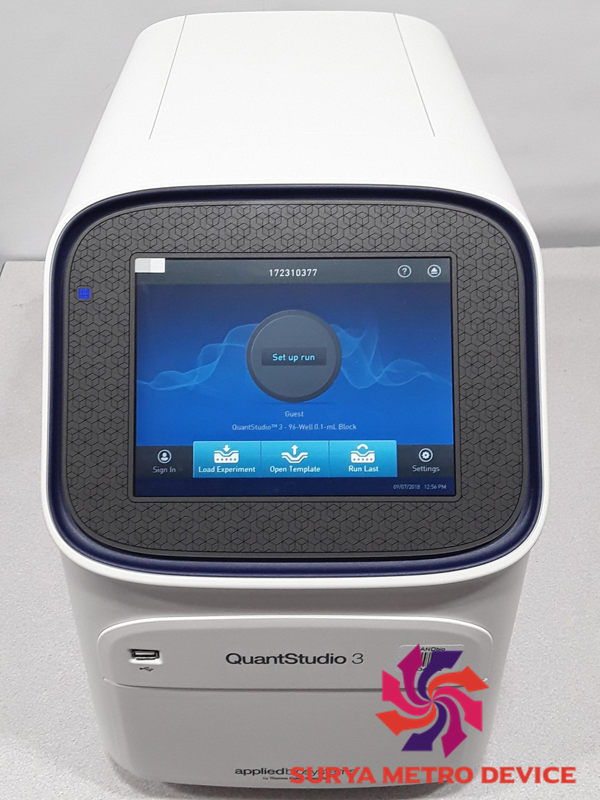 The Thermo QuantStudio 3 Real-Time PCR Systems is compact in form, factory calibrated and is delivered in user-friendly packaging to enable fast and simple installation for immediate use. The interactive touchscreen provides a modern usability experience and the simplified instrument software/pre-optimized protocol templates allow users of any experience level to quickly set up and start a run.